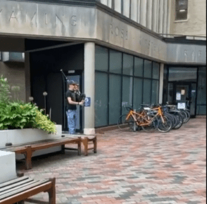 15-year old Jonah Burke has been visiting his father, Paul, throughout the pandemic from a distance to play the bagpipes outside of his hospital window at BIDMC.